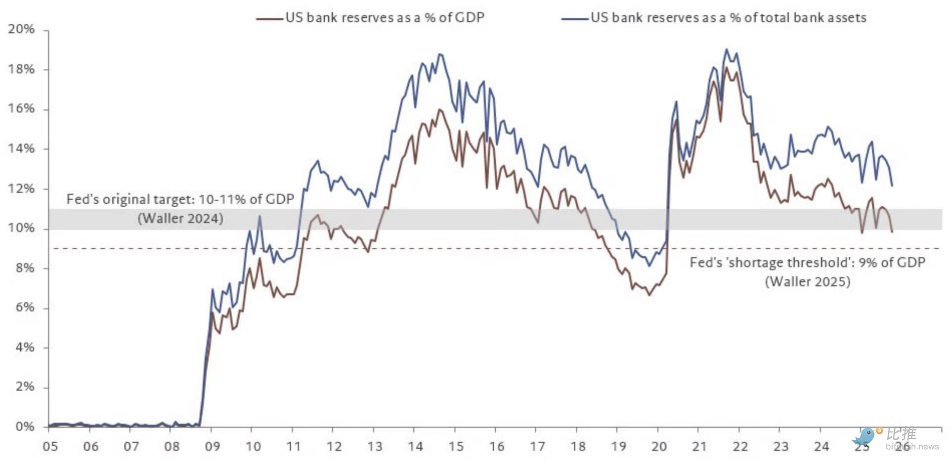 As this situation develops, bank reserves are approaching the Federal Reserve's "shortage level."