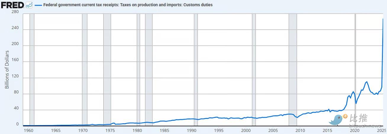 1. Expected tariff revenue: $380 billion per year (assuming a tariff rate of 13%). Below we can see the impact so far.
